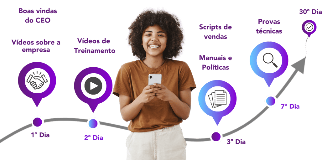 Acelere o desempenho dos novos vendedores criando trilhas e jornadas automatizadas de conteúdos e treinamentos